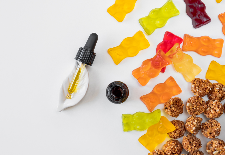 CBD-Esswaren wie Gummibärchen und Kapseln enthalten in jeder Portion eine vorher festgelegte Dosis, so dass Sie sich keine Gedanken über die Berechnung der richtigen Menge machen müssen. Außerdem haben diese CBD-Formen eine länger anhaltende Wirkung als CBD-Öle. Wenn Sie 40 mg CBD pro Tag benötigen und die Gummibärchen 20 mg CBD pro Stück enthalten, dann wissen Sie genau, wie viele Gummibärchen Sie pro Tag einnehmen müssen - zwei. Allerdings sind diese Produkte nicht sehr flexibel in der Dosierung, da die Kapseln nicht so einfach zu halbieren sind.